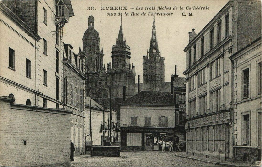 Version 3 : 38. EVREUX Les trois [léches de la Cathédrale Dle $ ds la Rue de VAbreuvoir C. M