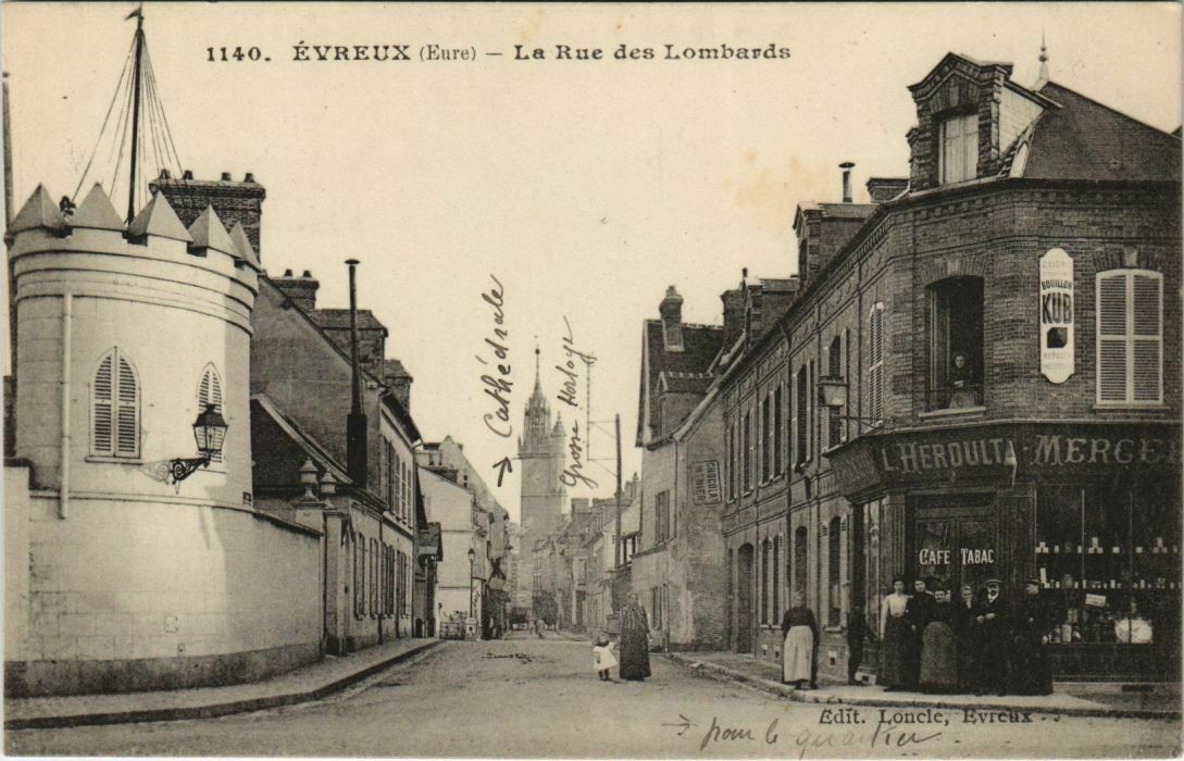 Version 3 : 1140 . EVREUX (Eure) La Rue des Lombards 1 7 HEROULT MERGE Cafe Tabac Edit. Loncle, Evrcux hou 6 YM