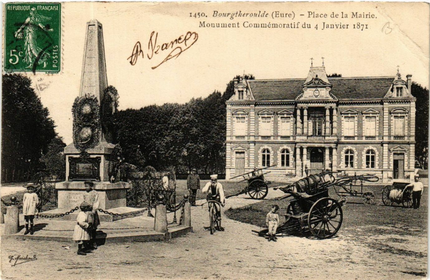 Version 3 : (Republiouf francAiSE 1450. Bourgtheroulde (Eure) Place de la Mairic. Monument Commémoratif du Janvier 1871 ( 2 3 #fsag