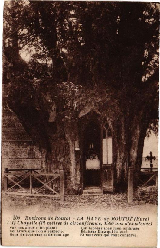 Version 2 : ROUTOT (Eure) L'If Chapelle (12 mètres de circon, , 1500 ans d'existence) Qui reposez sous mon ombrage Qu repousse ae ul l'ont conservé. 304 Environs de Routot - LA HAYE-d var nos ateux Hi fut planté Cet arbre que l'on a respecté Béniase Cens de tout sexe etde toutage | Ettoutce