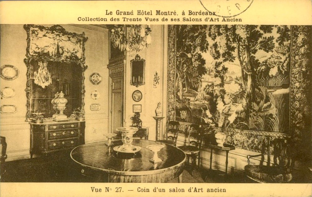 Version 2 : Le Grand Hôtel Montré, à Bordeaux ___- _— tion des Trente Vues de ses Salons d'Art Ancien srax x HR R * Vue N° 27. — Coin d'un salon d'Art ancien