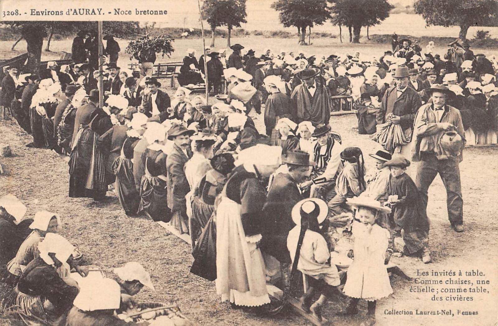 Version 3 : 3208 LOCMARIAQUER Noce Bretonne Les invités table comne chaises une échelle comme table des civieres