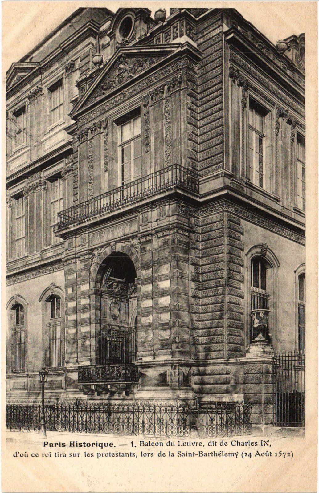 Paris Historique. - Balcon du Louvre, dit de Charles IX, d'où ce roi tira sur les protestants, lors de la Saint-Barthélémy (24 Août 1572)