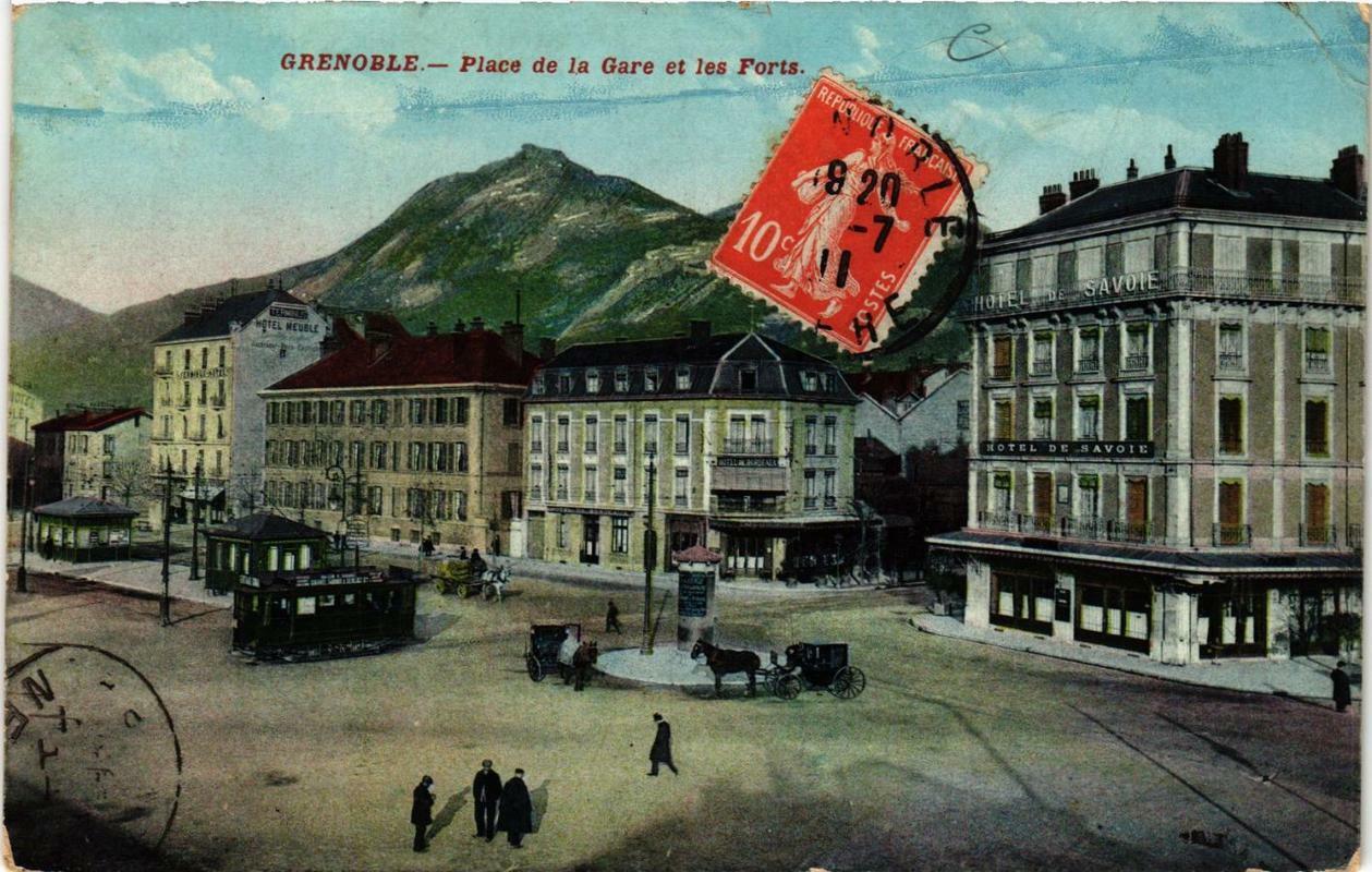 Version 1 : + GRENOBLE.— Place de la Gare et les Forts. An HOTEL DE SAVOIE