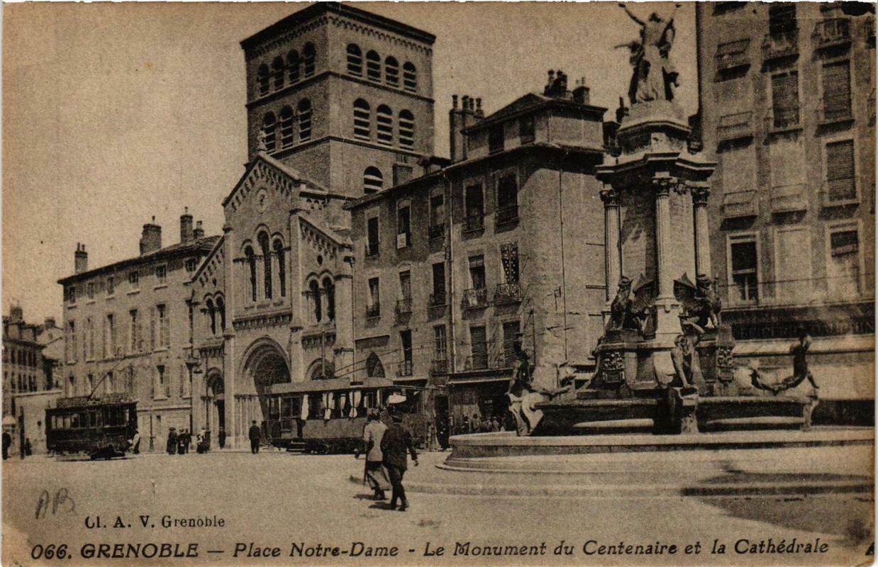 Version 2 : CL. A. V. Grenoble GRENOBLE — Place Notre-Dame - Le Monument du Centenaire et la Cathédrale 066.