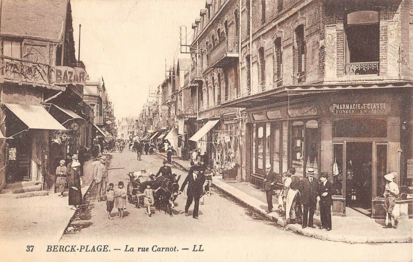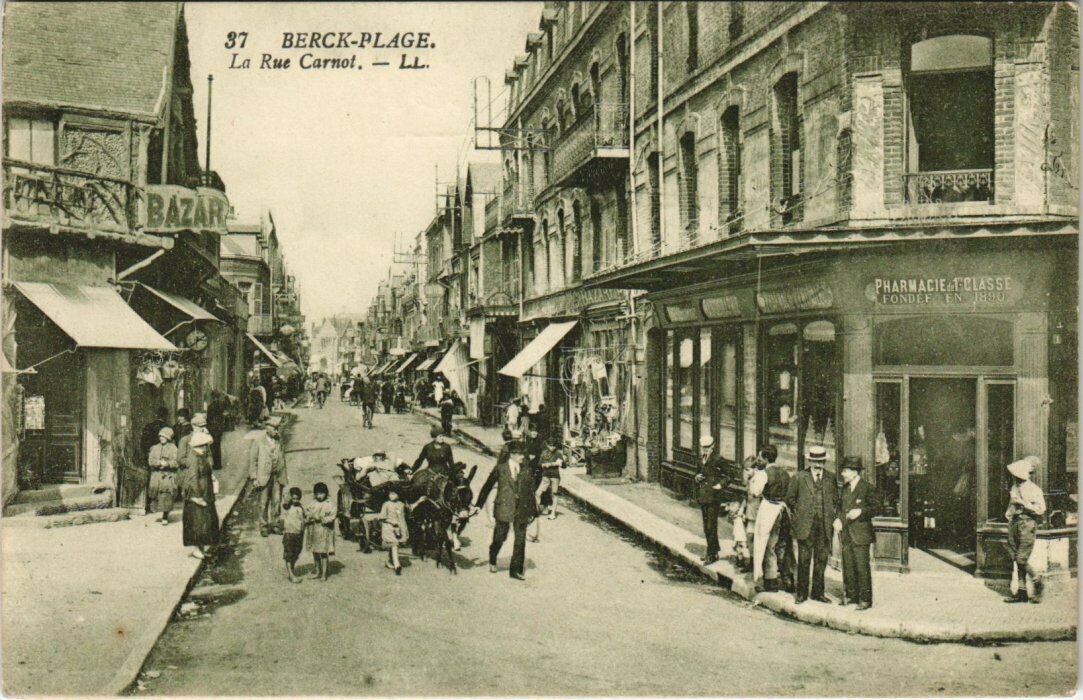 Version 1 : : 6 4 | “k boit: ; 25 vet 5 seggol , . PHARMACIE-T-CLASSE TENTE DECO 37 BERCK-PLAGE. — La rue Carnot. — LL LS - pu 7-2 A Ne AE