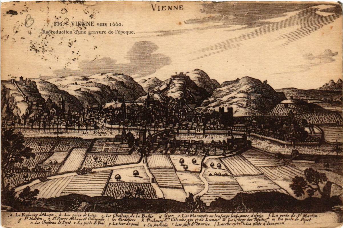 Version 3 : VIENNE 576. Vienne vers 1660 (Reproduction d'une gravure de lépoque) 2 @ @ 1 6 [ SUM: Lf L d La lourde pont La Cslenbn Laro prosffe uhure Prk