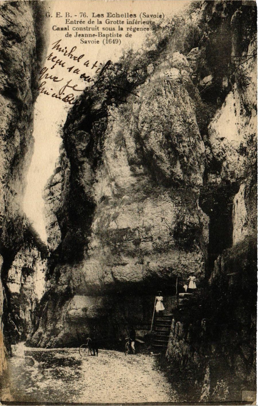 Version 3 : E B. 76 Les Echelles (Savoie Entrée de la Grotte inféricure Canal construit sous la régence de Jeanne-Baptiste de Savoie (1649) 7e 4; 4 f` ~4