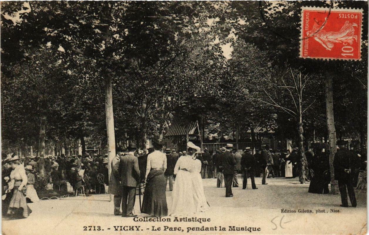 Version 1 : = ' : cie FE VE a Edition Giletta, phot . Nice. ColfécHon Artistique 2713. - VICHY. - Le Parc, pendant la Musique