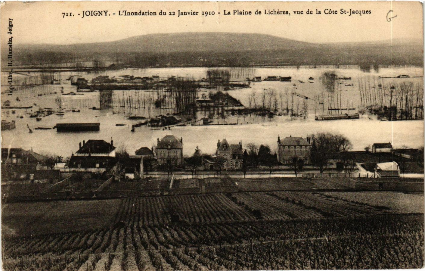Version 3 : 711. JOIGNY. LInondation du 22 Janvier I9I0 La Plaine de Lichères, vue de la Côte St-Jacques 5 1 5 5