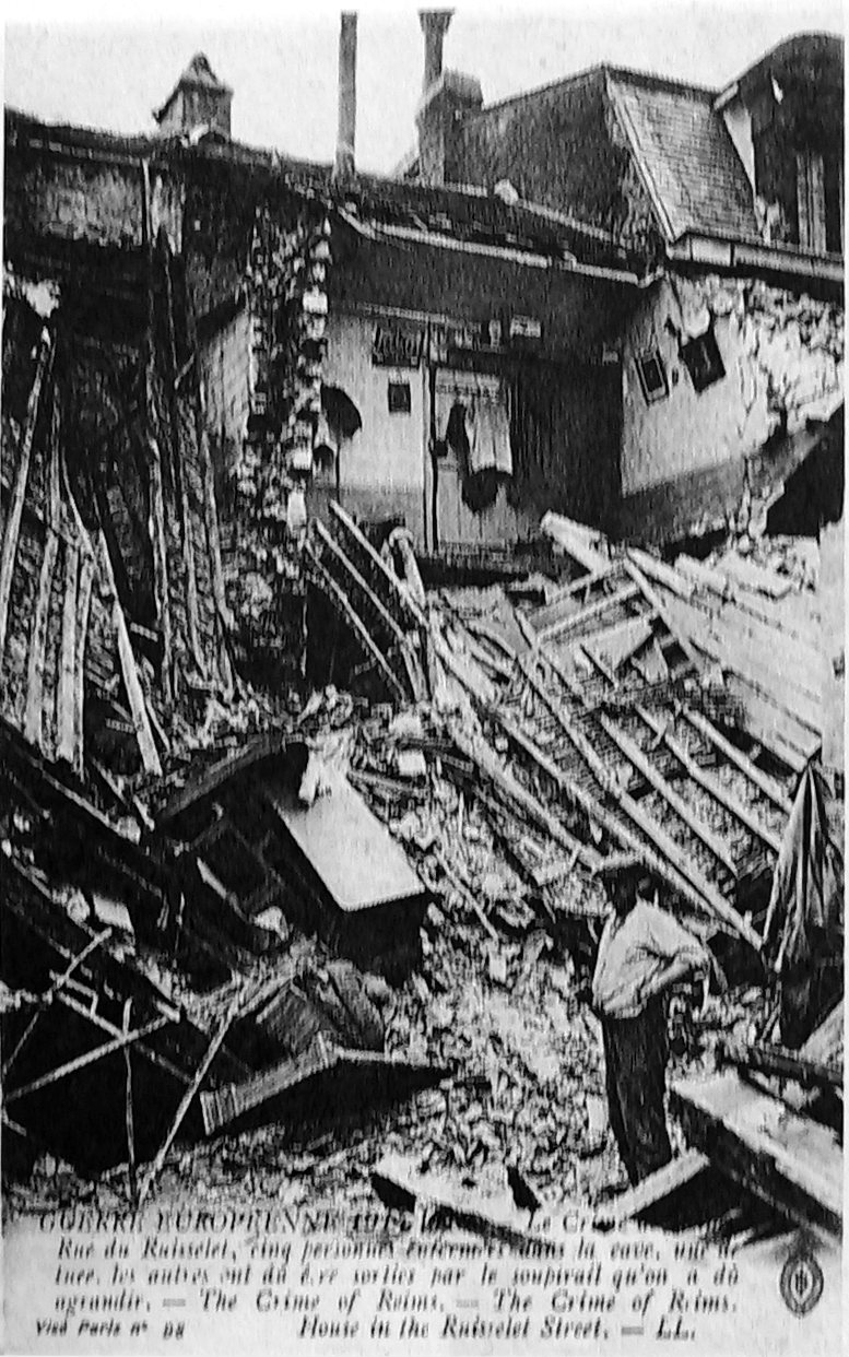 Version 3 : GUERRE 494-1915. Rue Cavc, Wn€ Jes 7Cs ëtre sorties par le soupuuil aIl agrand The Crime VIse Parls 228 Reims . House in lhe Ruisselet Street . LL qwon