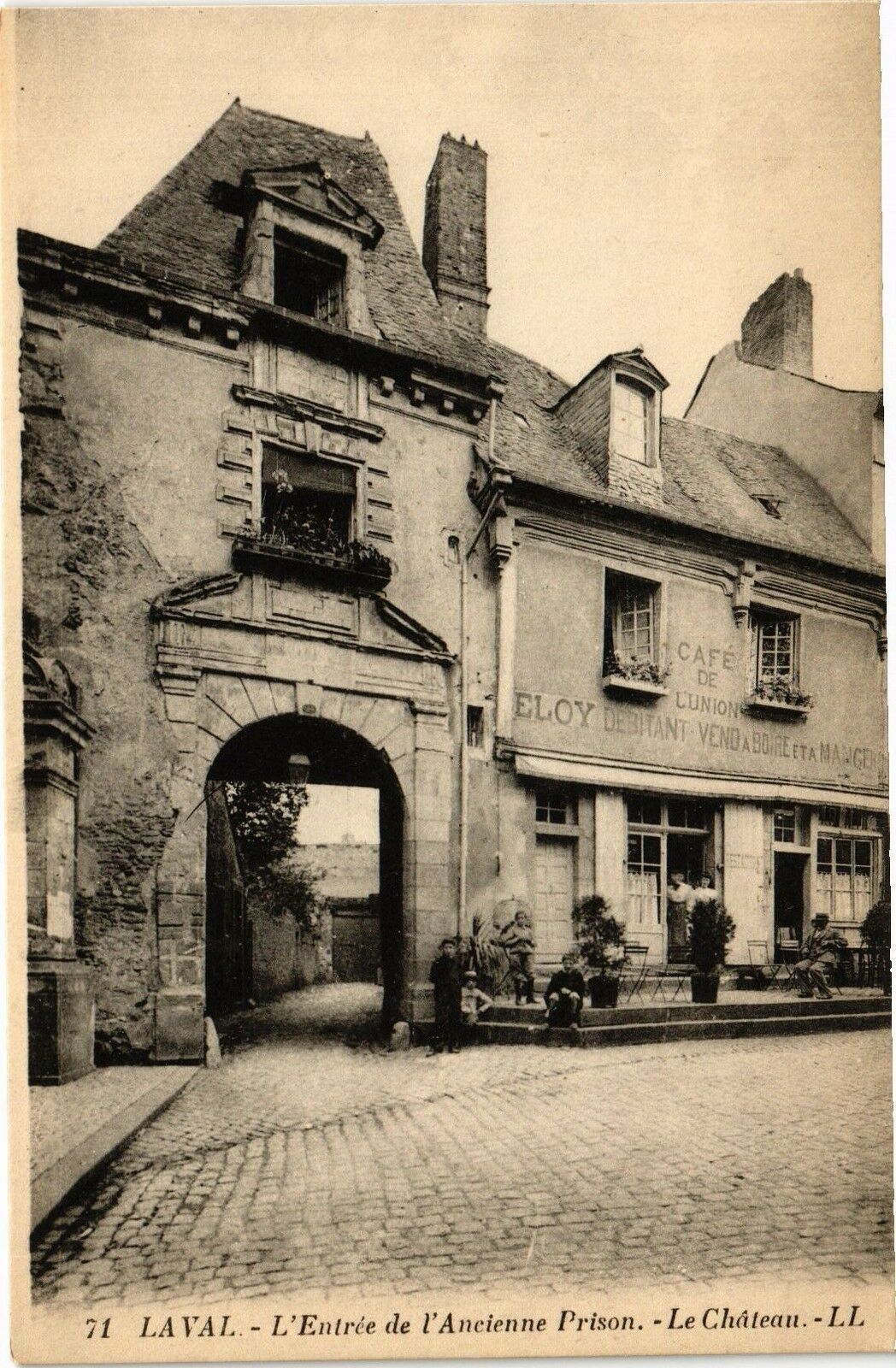 Version 3 : DE 0n 71 LAVAL L'Entrée de Ancienne Prison . Le Château . LL 1 CAFE ELOY LuNIONE FANT