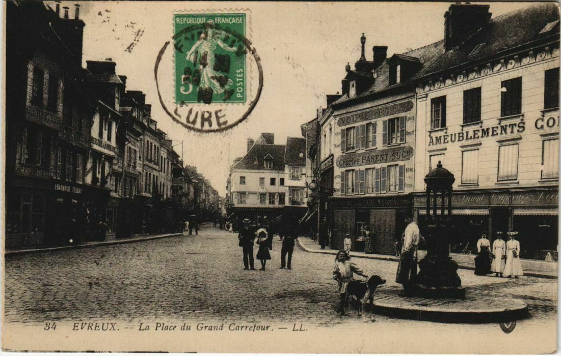 Version 3 : 0 34 EVREUX La Place du Grand Carrefour . LL GRAIRETERIE AMEUBLEMENTS