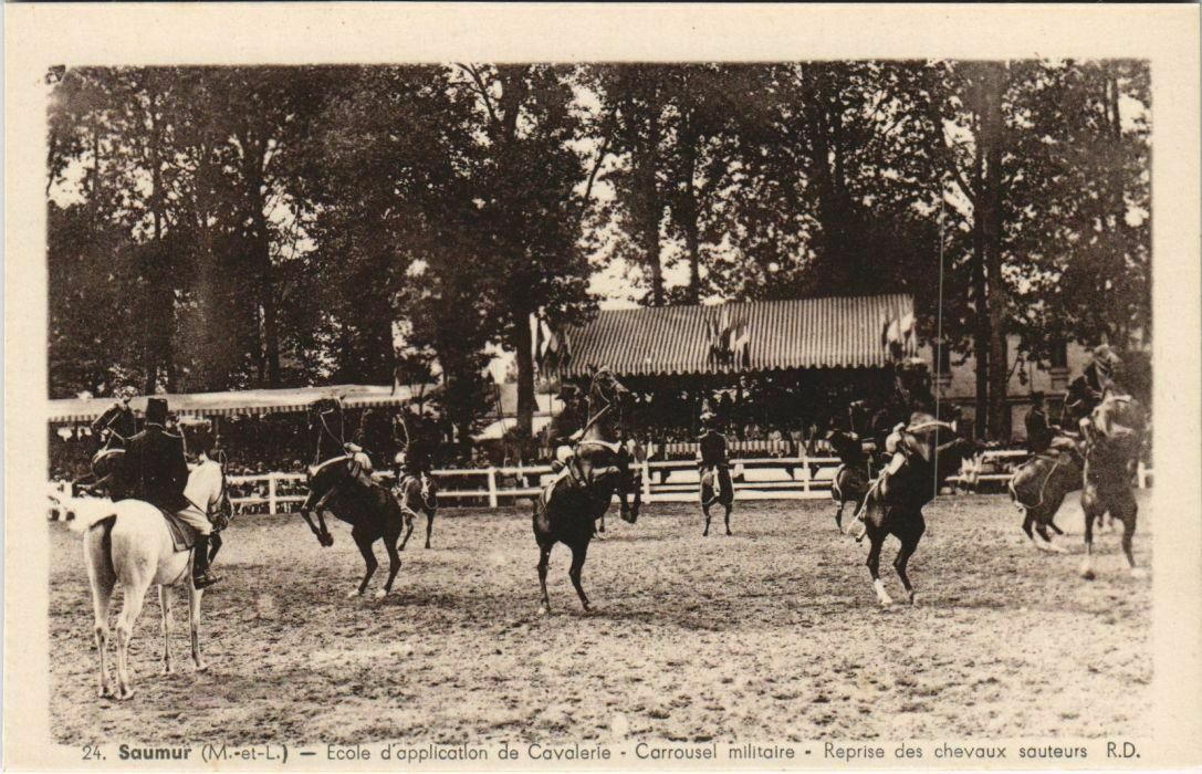 Version 3 : 24 SAUMUR (M.-et-L.) - Ecole d'application de Cavalerie Carrousel Militaire Reprise des chevaux sauteurs R. D