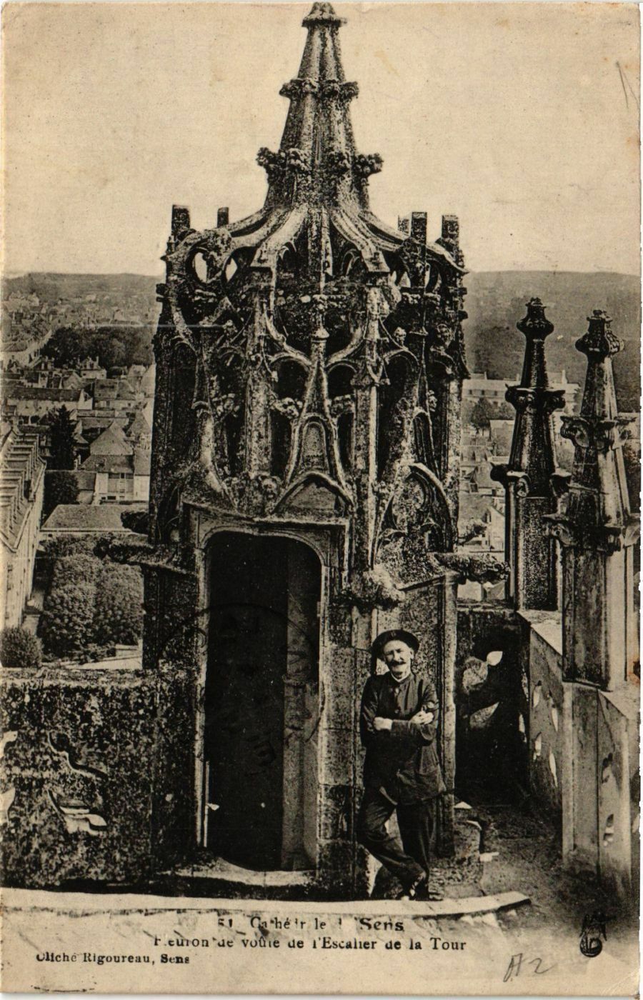 Version 3 : Cl che Igoureau, Sens 51 . Cathédrale de Sens Fleuron de voûte de 1Escalier de la Tour