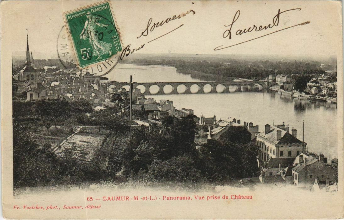 Version 3 : 65 SAUMUR M -et-1.) Panorama, Vue prise du Château Fr, Vaelcker, phaf., Saumur débos francAISE| aectend Jozeees_