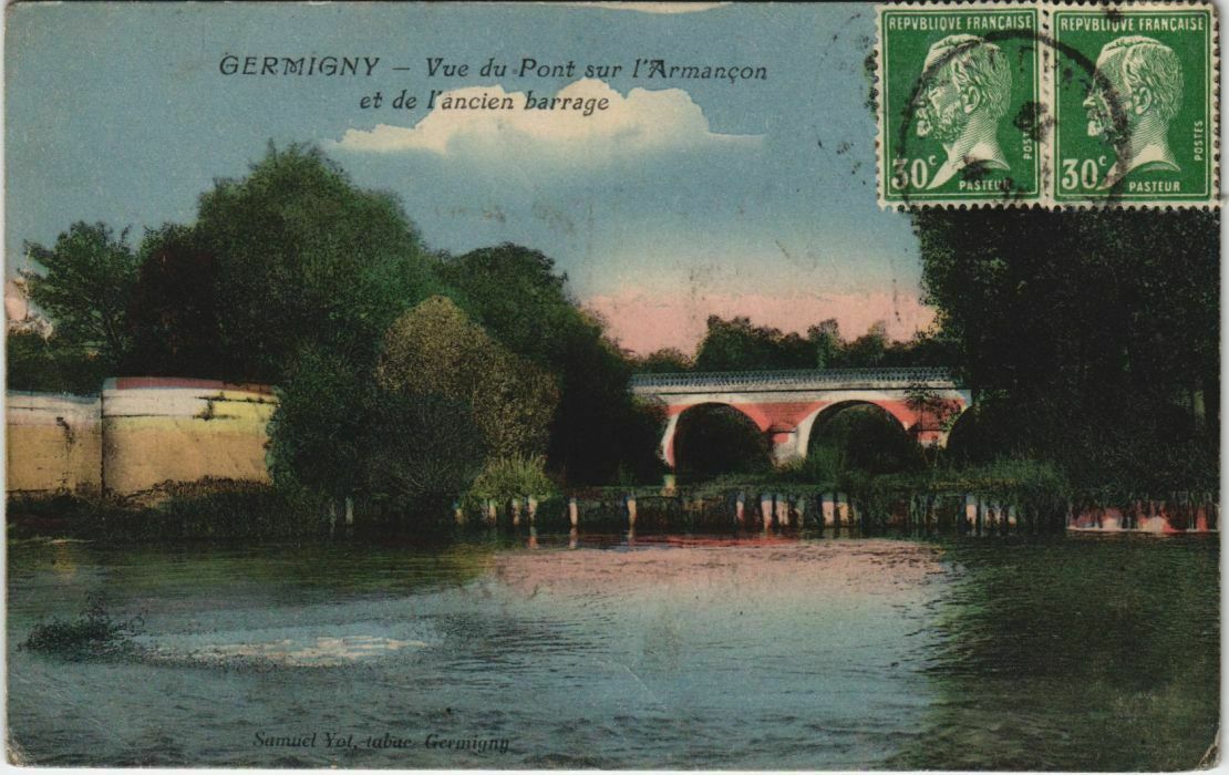 Version 3 : Repvbliove Francaise repvblivve francaisei GERMIGNY du Pont sur [Armançon et de [ancien barrage 130 [30 Pasiur SamuclYolrslabues Germianu Vue