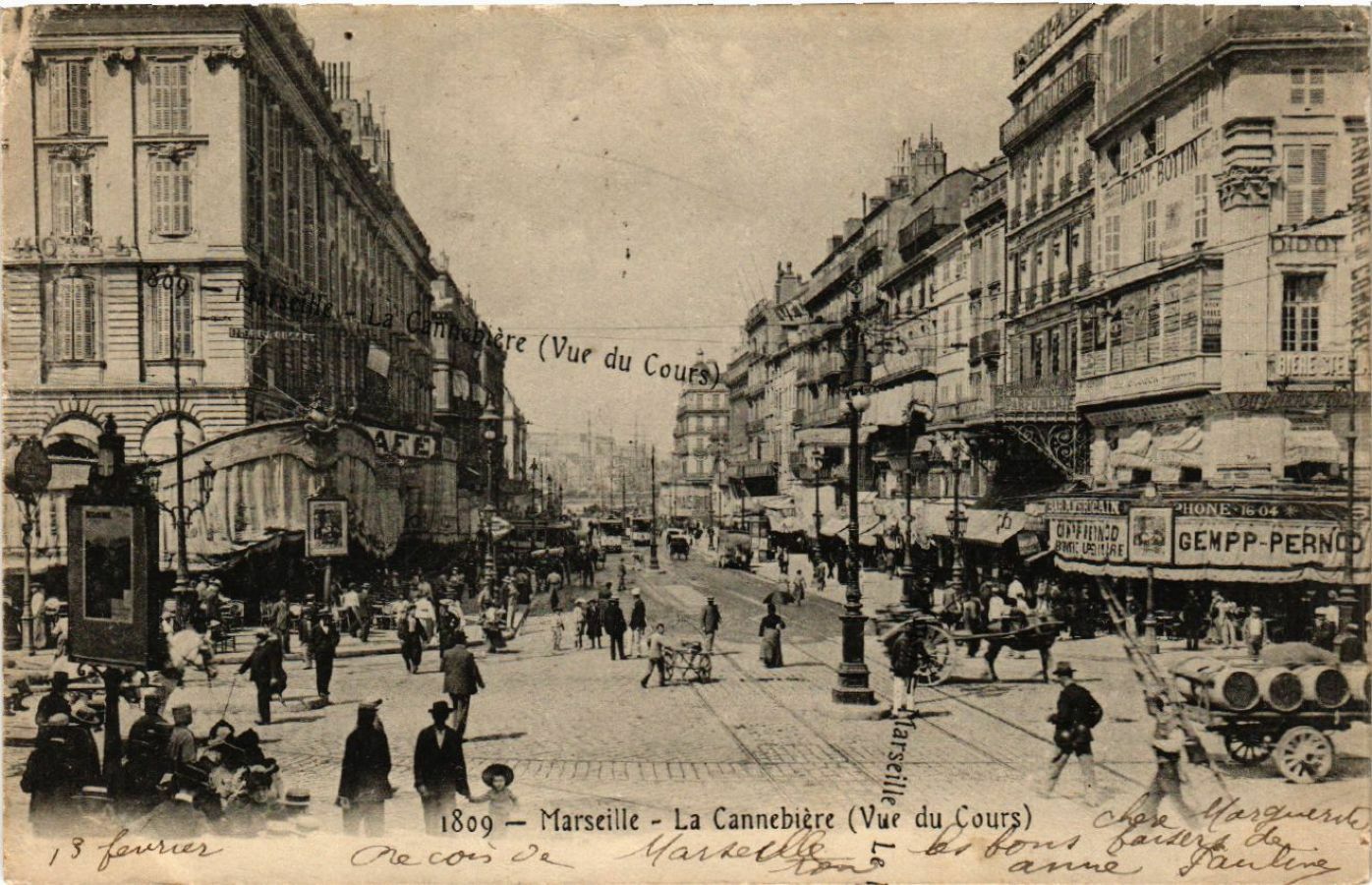 Version 3 : [CEMPP-PERNGP Phototypie E Lacour, 19, rue Thubaneau Marseille La Cannebière (Vue cu Cours) 1809