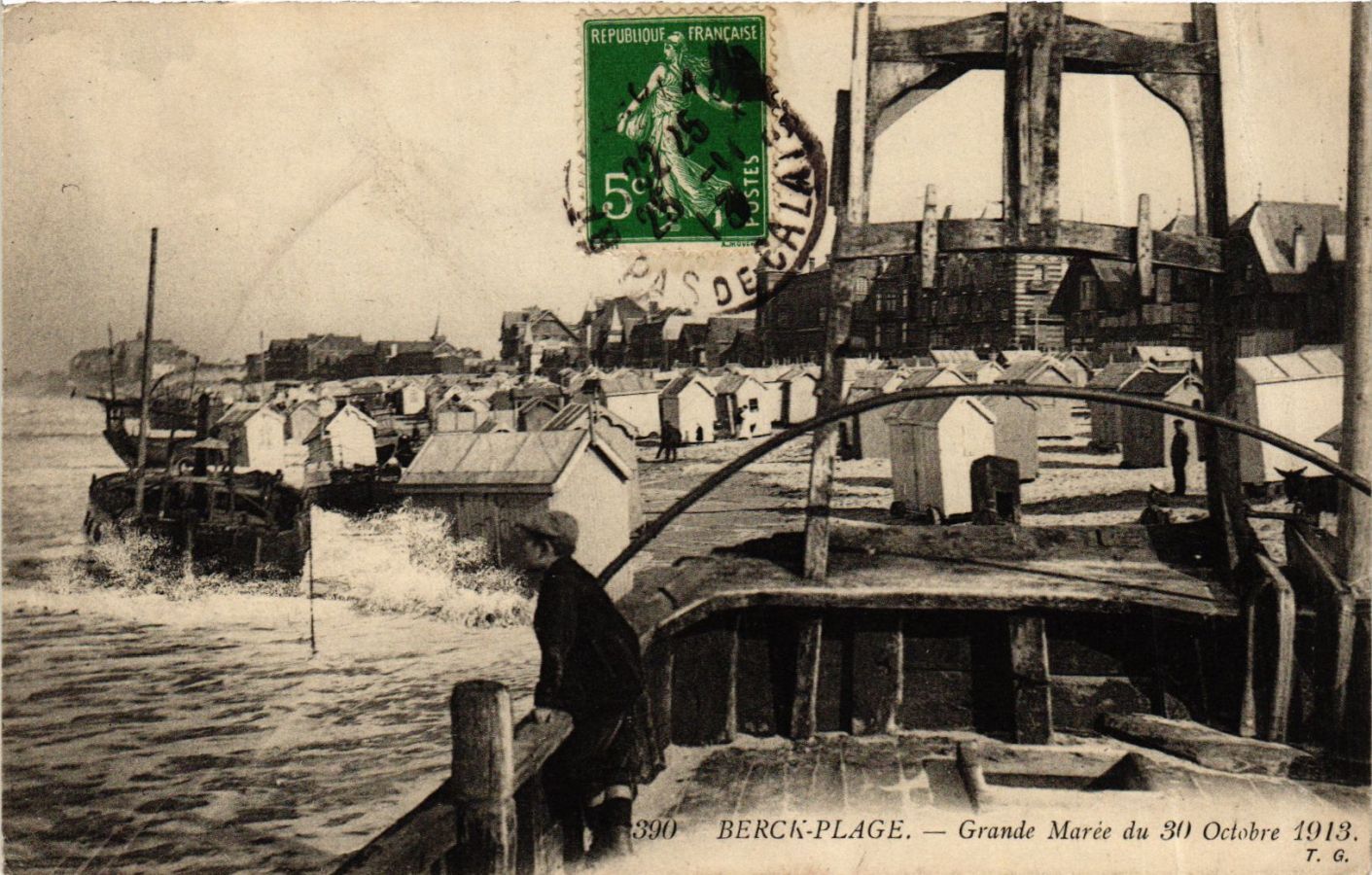 Version 3 : RepuBliouF FRANCAISE 5c 390 BERCI-PLAGE Grande Marèe du 30) Octobre 1913 0E