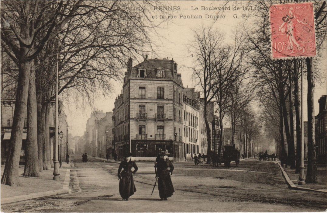 Version 3 : 104 RENNES Le Boulevard de la Liberte et lu Rue Poullain Duparc G.F Cotluclionr Rougeelitrer Reunes