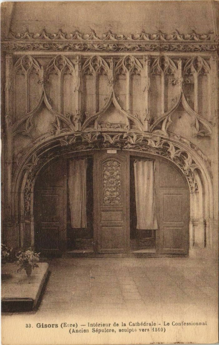 Version 3 : 33 Gisors (Eure) Intérieur de la Cathédrale Le Confessionnal (Ancion Sépulcre; sculpto Vors 1510)