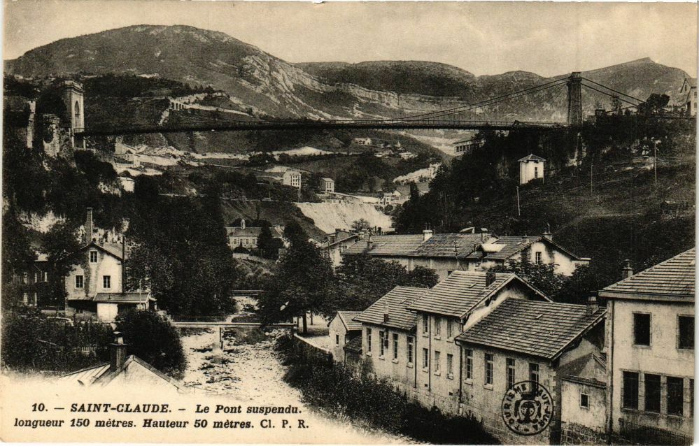 Version 3 : 1o . St-CLAUDE. Le Pont suspendu Longueur 150 métres Hauteur 50 mètres CI. P . R.