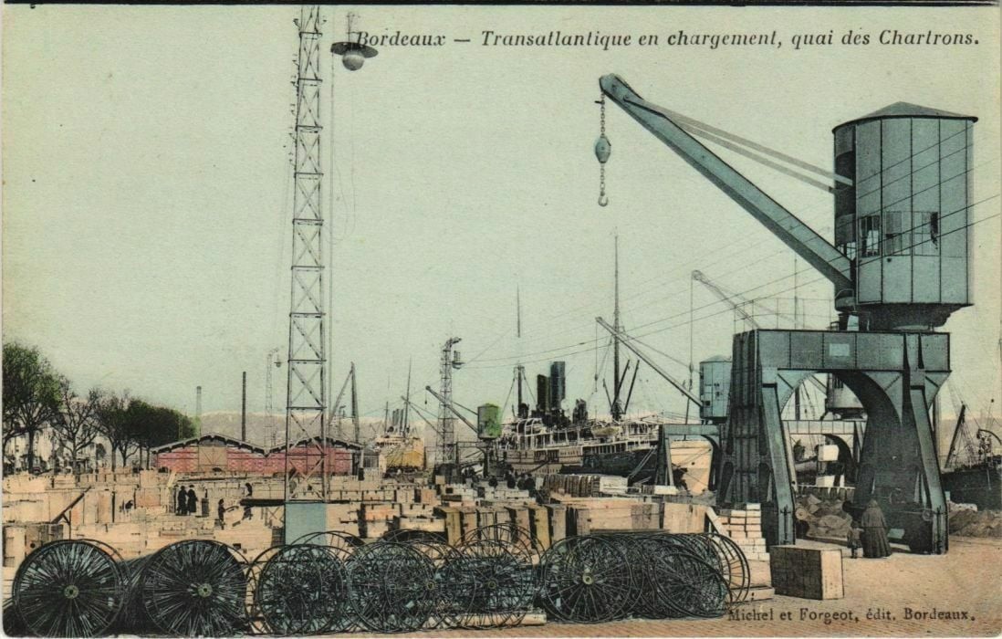 Version 3 : Bordeaux Transatlanlique en chargement, des Chartrons. ichel et Forgeot, édit, Bordeanx . quai