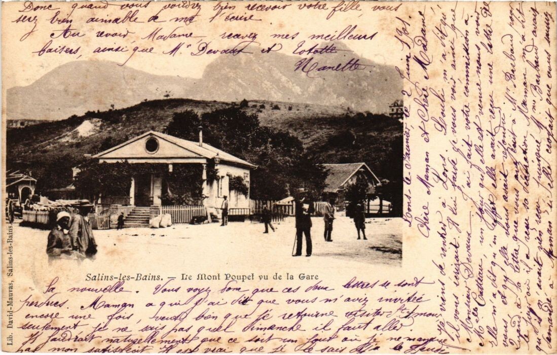 Version 1 : Lib. David-Mauvas, Salins-Jes-Bains.4g 4 a, v Salins-les-Dains. — Te Mont Poupel vu de la Gare