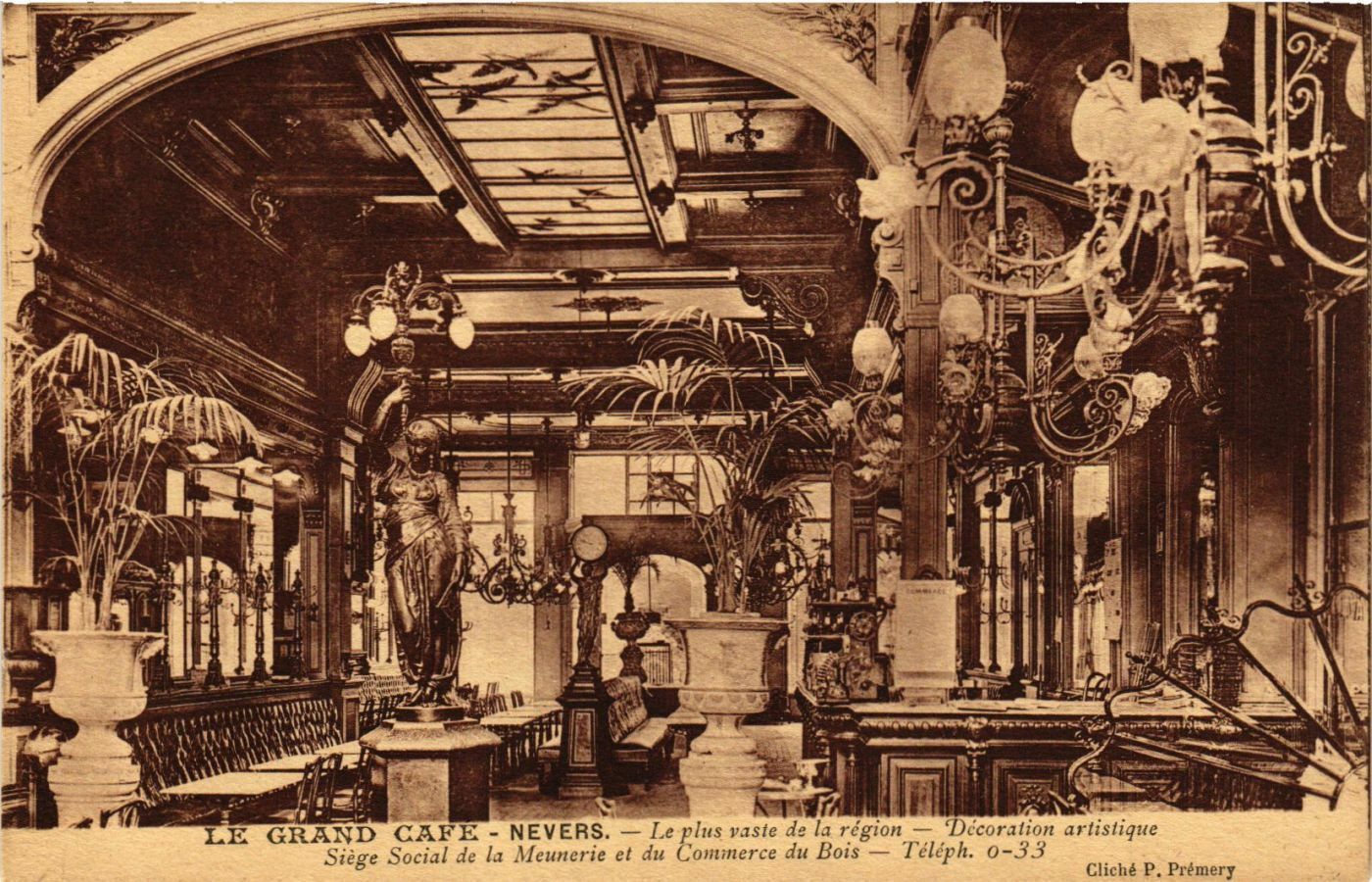 Version 3 : LE GRAND CAFE NEVERS. Le Elusweste vaste de la région Décoration artislique Siège Social de la Meunerie et du du Bois Téléph. 0-33 Cliché P. Prémery