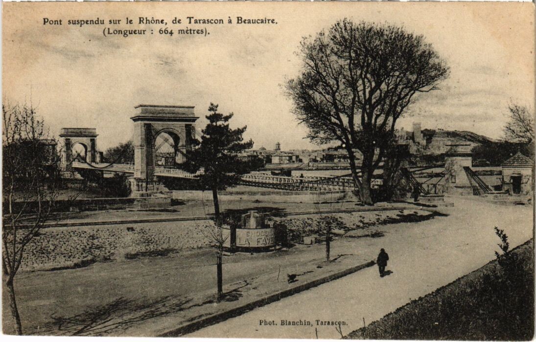 Version 1 : Pont suspendu sur le Rhône, de Tarascon à Beaucaire (longueur 664 mètres) Phot. Blanchin. Tarascon °