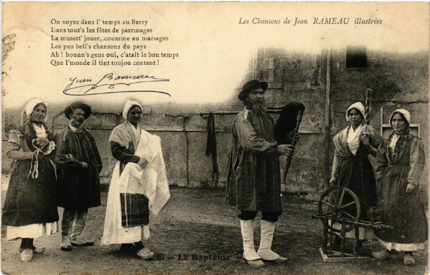 Version 2 : On voyez dans l* temps au Berry Dans tout's les fêtes de parrinages La musett: jouer, coumme aux mariages Les pus bell's chansons du pays ; Ah! bounn's gens oui le bon temp: Que | monde il tint toujou content ! Les Chansons de Jean RAICE AU illustrées