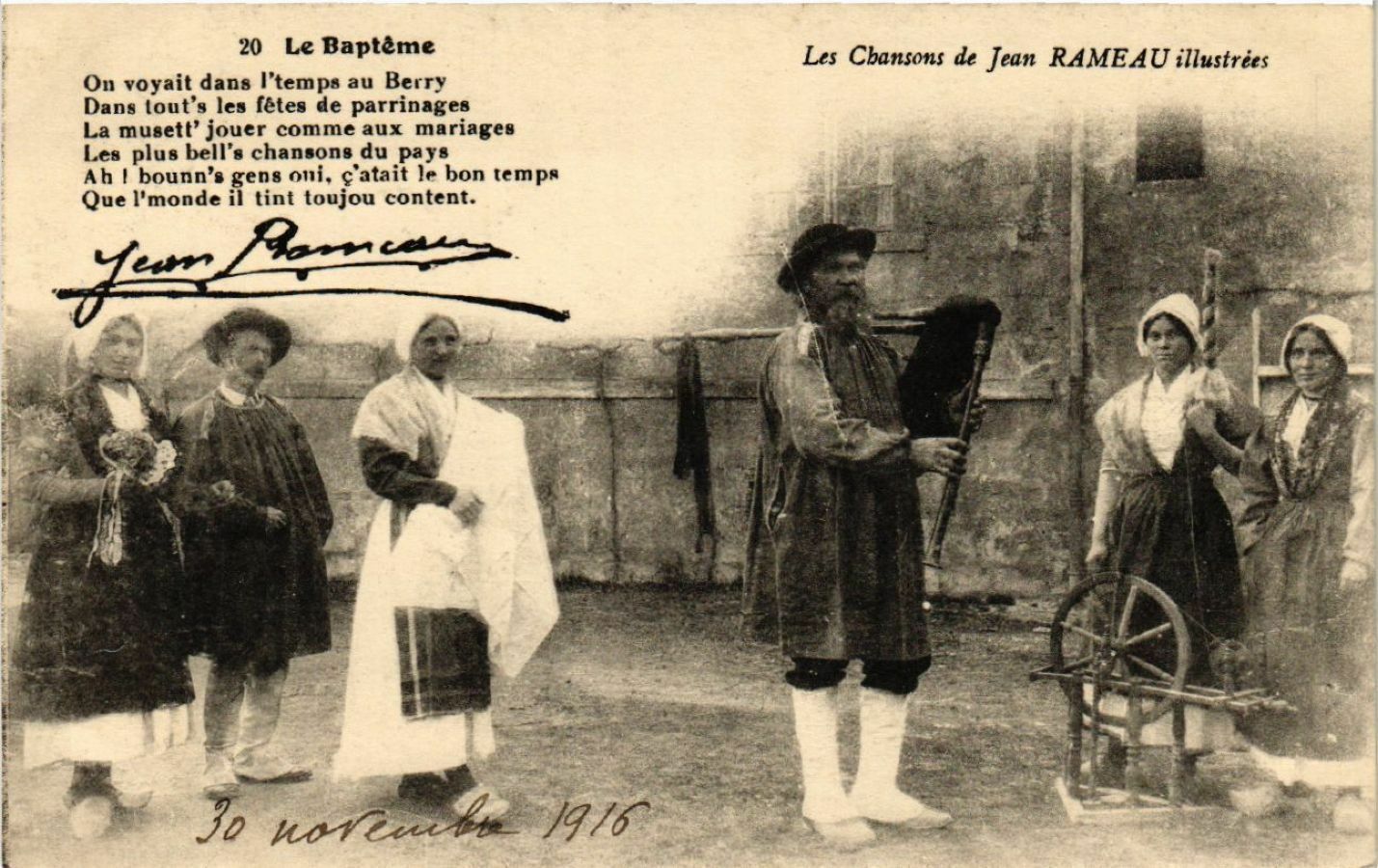 Version 1 : On voyez dans l* temps au Berry Dans tout's les fêtes 'de parrinages La musett' jouer, coumme aux mariages Les pus bell's chansons du pays ; fAih ! bounn's gens oui, ç'atait le bon temps Que |* monde il tint toujou content ! CDN CA