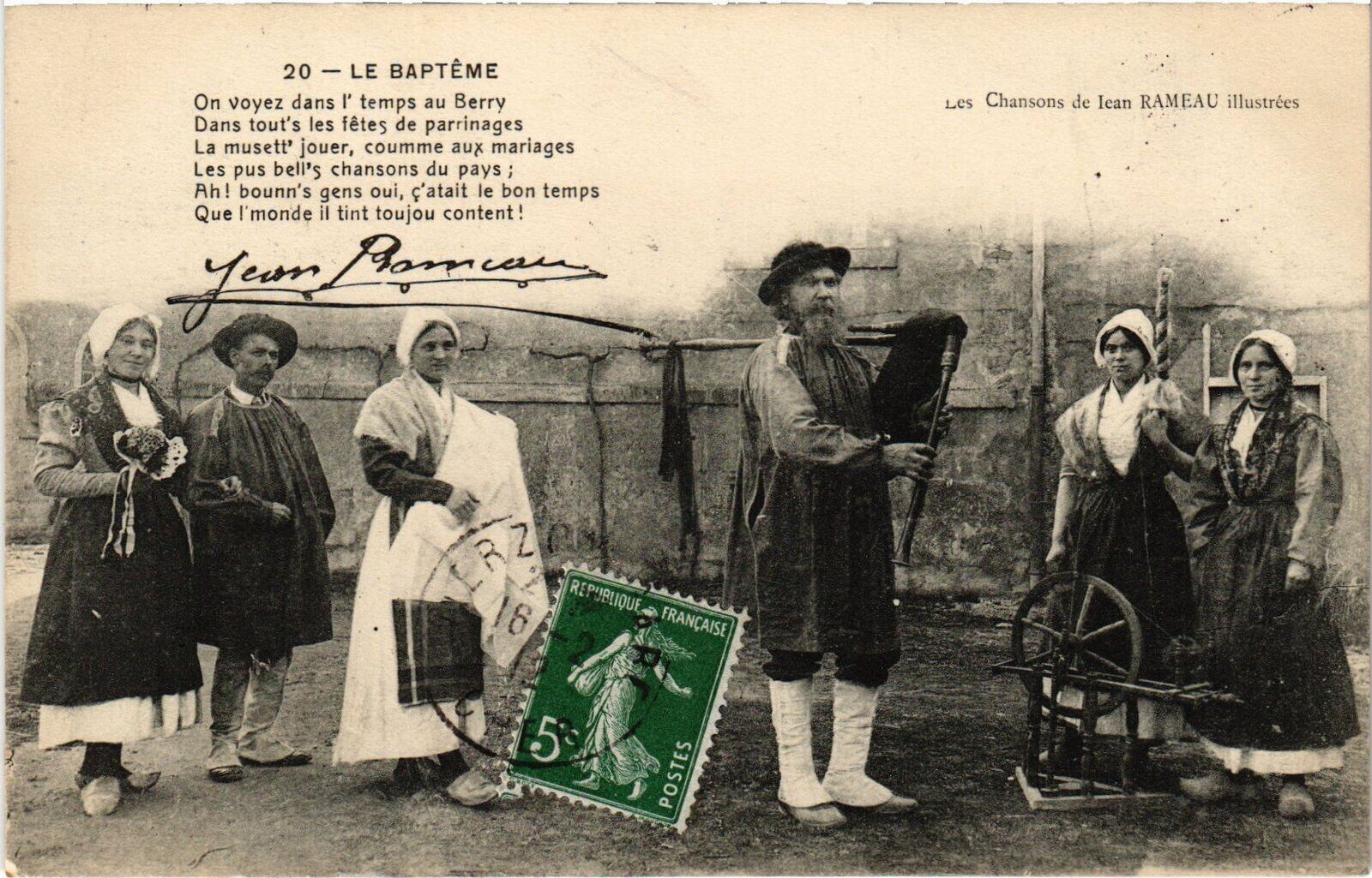 Version 3 : On voyez dans |' au Berry Les Chansons de Jean RAJCE AU illustrées Dans tout's les fêtes de parrinages La musett' jouer, coumme aux mariages 43 Les bell's chansons du pays 65 Ah ! bounn'5 gens oui, f'atait le bon temps Que monde il tint toujou content 8 4227 20 LE BAPTEME temps Pus