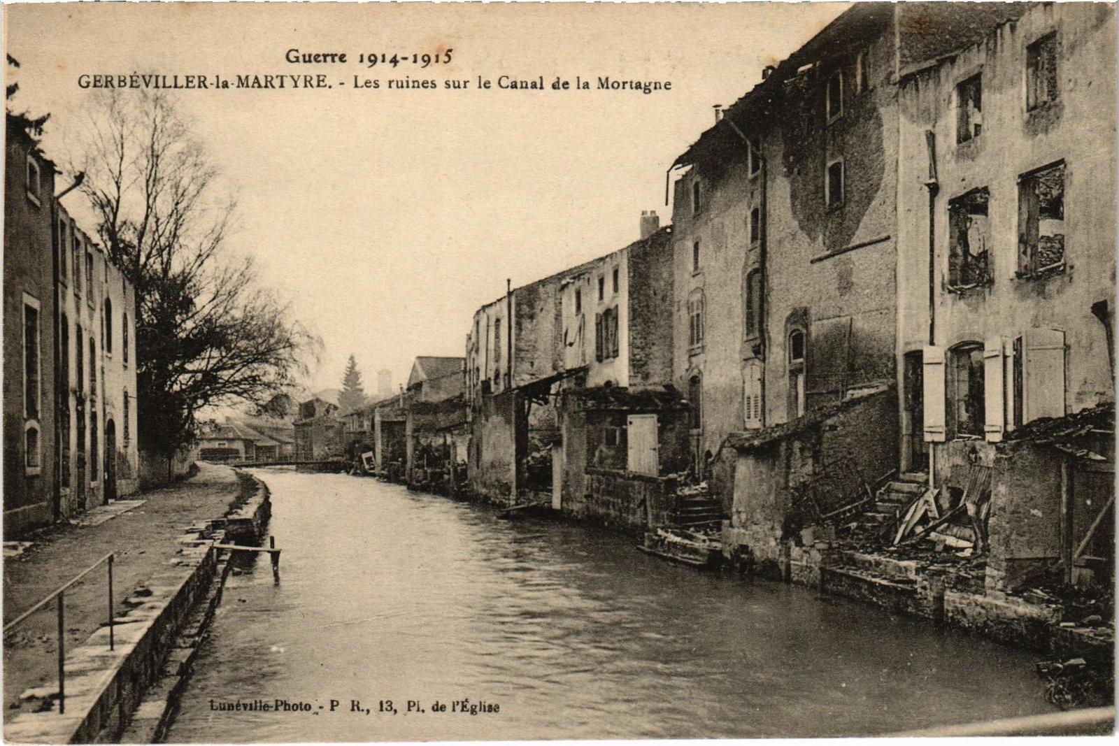 Version 3 : Guerre 1914-1915 GERBEVILLER-la-MARTYRE. Les ruines sur le Canal de la Luuarille P R, 12, Moragne Photo