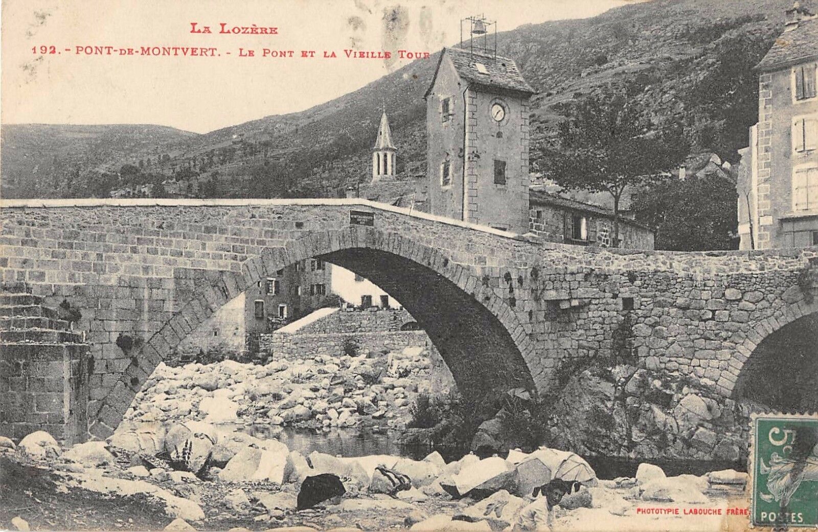 Version 1 : ; La Lozère 192.- PONT-nr-MONTVERT. - LE PonT ET LA VIEILLE To UR 5 5° 0 = PHOTOIYPIE LABOUCHE FAERE:
