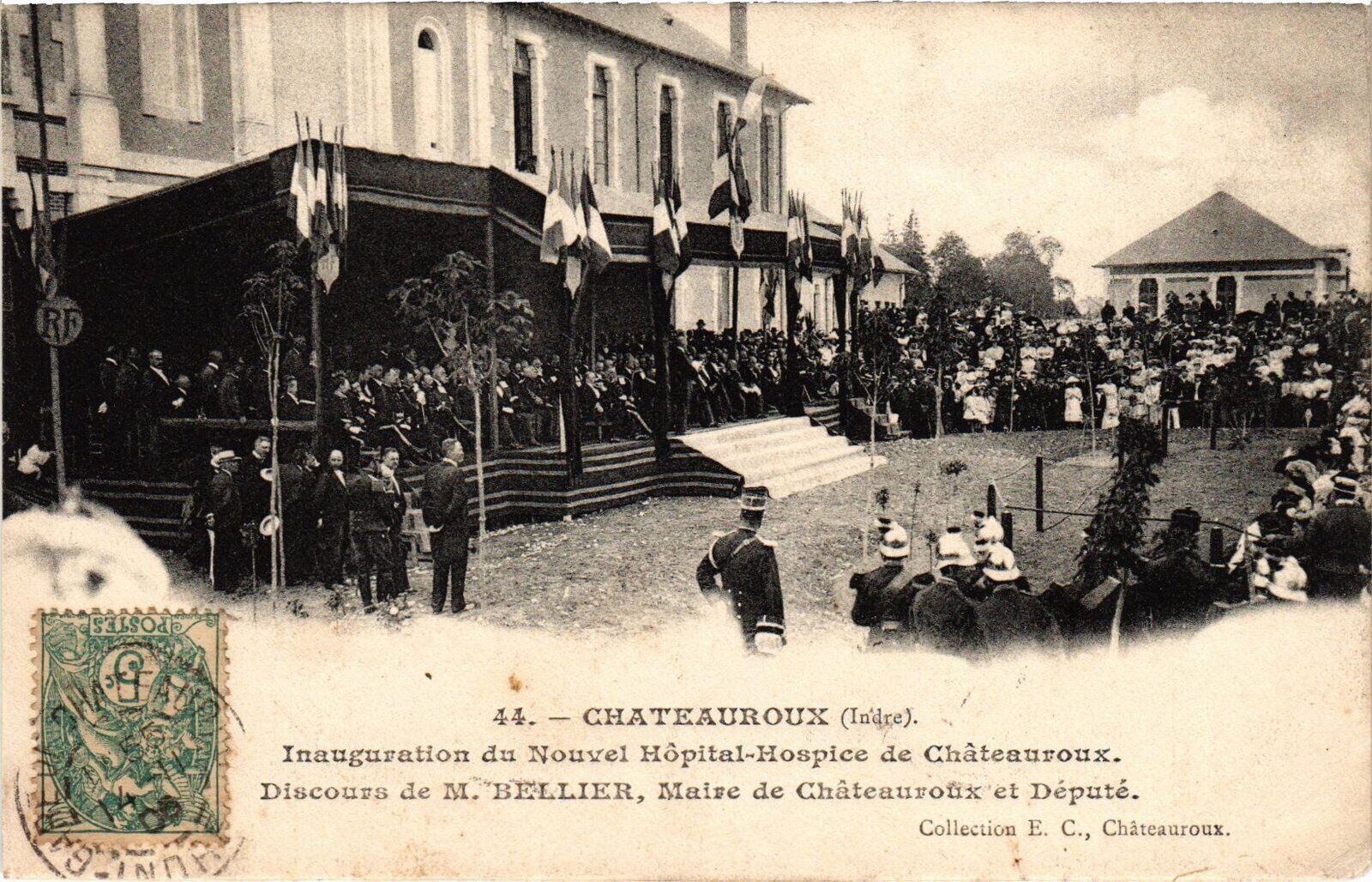 Version 2 : A1. — CHATEAUROUX (Indre). Inauguration du Nouvel Hôpital-Hospice de Châteauroux. Discours de M. BELLIER, Maire de C roûix'et Député. Collection E. C.