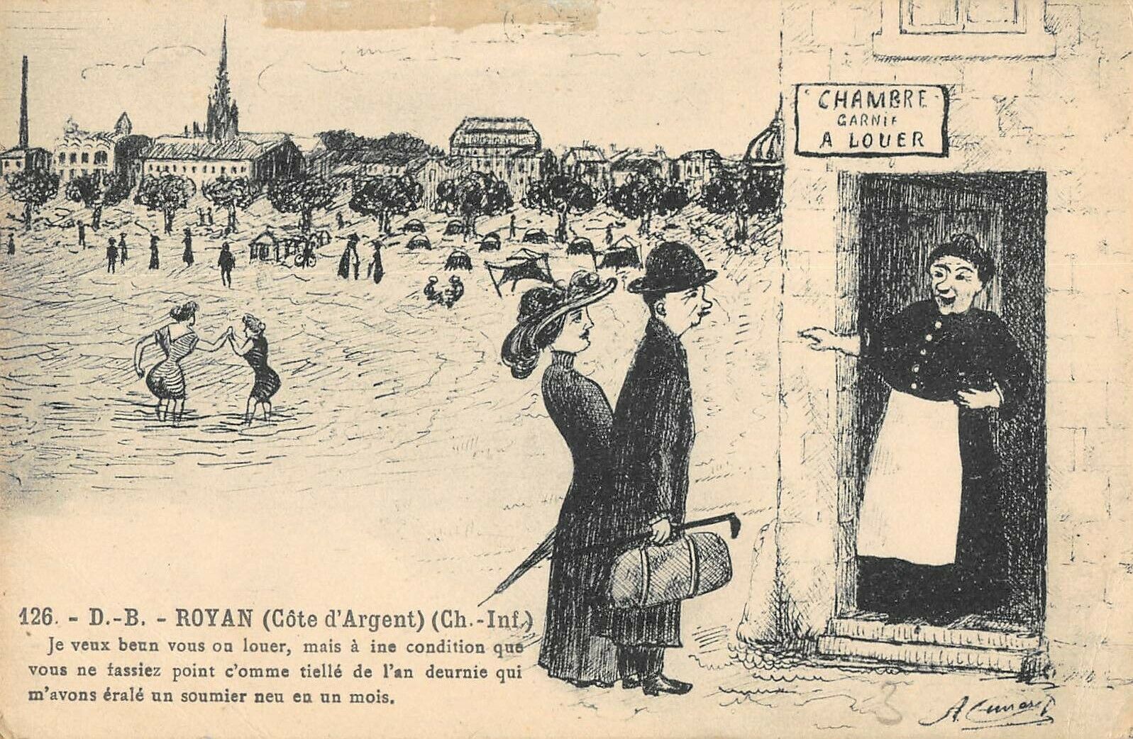 Version 1 : GARNI + CHAMBRE 25 126. - D.-B. - ROYAN (Côte d'Argent) (Ch.- ni) Je veux beün vous on louer, mais à ine condition que vous ne tfassiez point c'omme tiellé de l'an deurnie qui m''avons éralé un soumier neu en un mois.