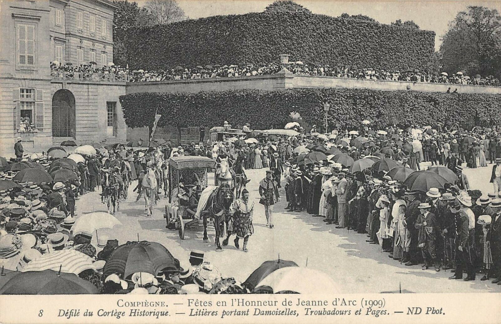 Version 2 : 21e pps - tes en l'Honneur de Jeanne d (1909) 8 Défilé du Cortège Historique. — Litières portant Damoiselles, Troubadours et Pages. — ND Phot,