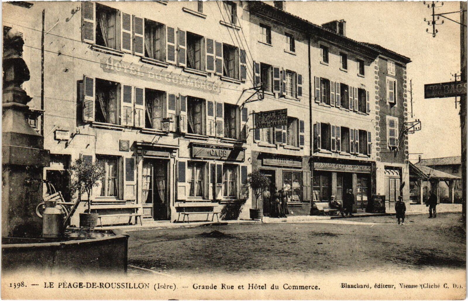 Version 1 : 1598. i QUIL) -- LE PEAGE-DF-ROUSSILLON (lsère) —2e= = Grande Rue e: Hôtel du Commerce. 0 6.0. » mor enr td re ‘ Blanchard, éditeur, Vienne YCliche C, 140.