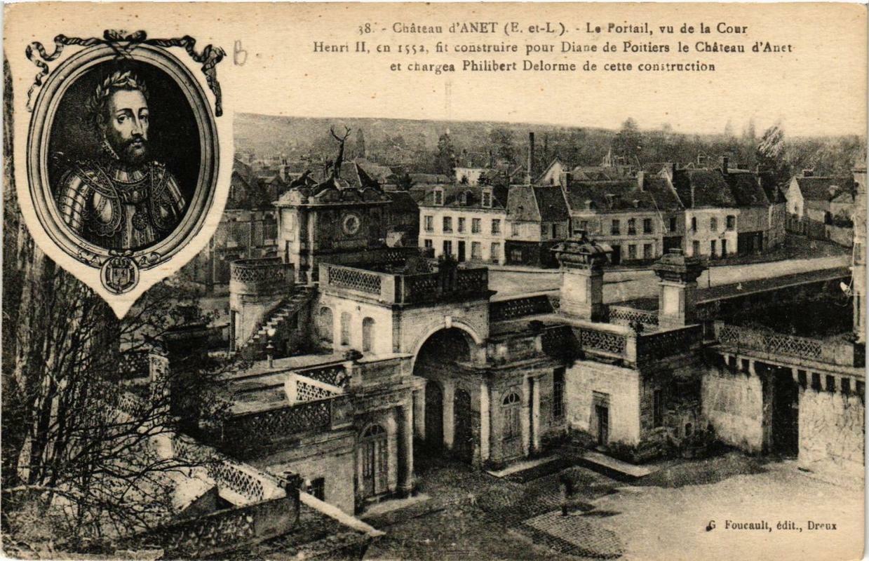 Version 3 : Ctâteau dANET (E-et-L.) Henr1 Il, en 1512, fit construire pour Diane de Poitiers le Chàteau d'Anet chargea Philbert Delorne de cette construction Foucnult, édit., Dreux
