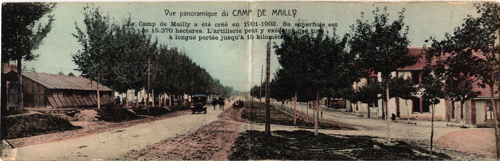 Version 2 : Vue Panoramique du CAMP de MAILLY, créé en 1901-1902, Superfcie 15.370 hect. Pi occapé actuellement par uos braves Alliés, Russes et Belges