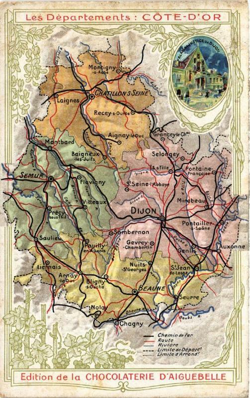 Version 3 : Les Départements cOTE-D'OR Montignyo CHATILLON S SEINE Laignes Recey-s-Ource Aignay te Duc éGranceyle Ch Mo 'Dtbard Baignëux Selongey les-Juifs SsTille Fontaine SEMUR Française Flavigny S'Seine-rAbbaye 9 Vitteaux Mireteau Précy- DIJON sousThil Pontailler Scone @Sombernon Saulieu Pouitly- Chambertin Gevrey:@ Auxonne ens Uxois Genlis Liernais Nuits S:jëan S'Georges de-losne Arnay Ic Duc Blig ny s-Ouche BEAUNE Seurre Nola @Chagny Cheminde Fer Route Rrviere Limite de Départ' Limite dArrond Edition de Ia CHOCOLATERIE D'AIGUEBELLE Ustice pe Dijon n Dhevec quds