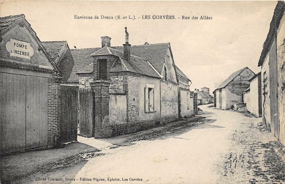 Version 3 : Environs de Dreux (E.-et-L.) LES CORVEES Rue des Allées Circh Foucaully Dreux Edition Plge|n, Epicler; Las Corvles PoMPE IMcExDIE