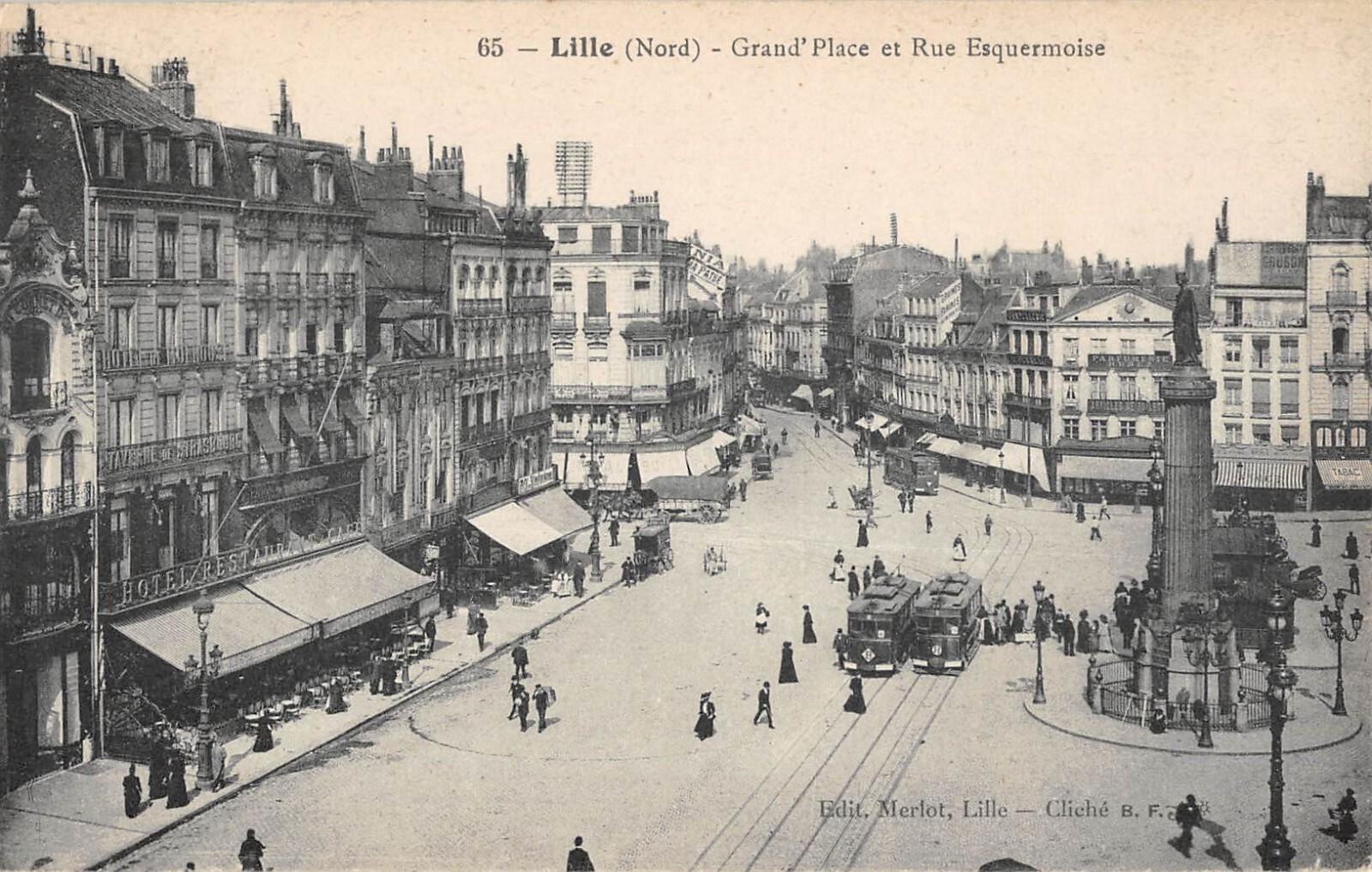 Version 3 : 65 Lille (Nord) Grand' Place et Rue Esquermoise rirublou FRANCAYSE Repue'ioue FRANCAIS 0 Edit . Merlot, Lille Cliché B.F : JQîE
