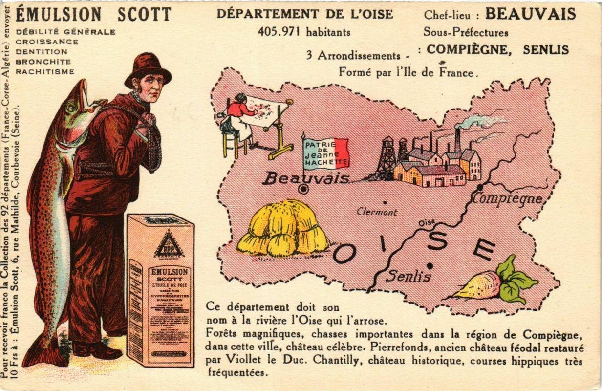 Version 1 : EMULSION SCOTT DEPARTEMENT DE LA CREUSE DEBILITE GENERALE , CROISSANCE 219.148 habitants Chef-lieu : GU ERET BRONCHITE RACHITISME Sous-préfecture : AUBUSSON (France-Corse-Algérie) envoyer (Seine). 2 Artrondissements Guere “A, Formé par la Marche. Ce département doit son y nom à la rivière qui le ° p traverse. &, A) = Le ° a Bourganeut Plus riche en pâturages et \ VER A en essences forestières qu'en 4 SRE terres de culture. PA ; mes ps s …- . ° CT “ Cur Carrières de pierre. Aubusson : manufacture de tapisserie. Pour recevoir franco la Collection des 92 départements 10 Frs à : Emulsion Scott, 6. rue Mathilde, Courbevoie