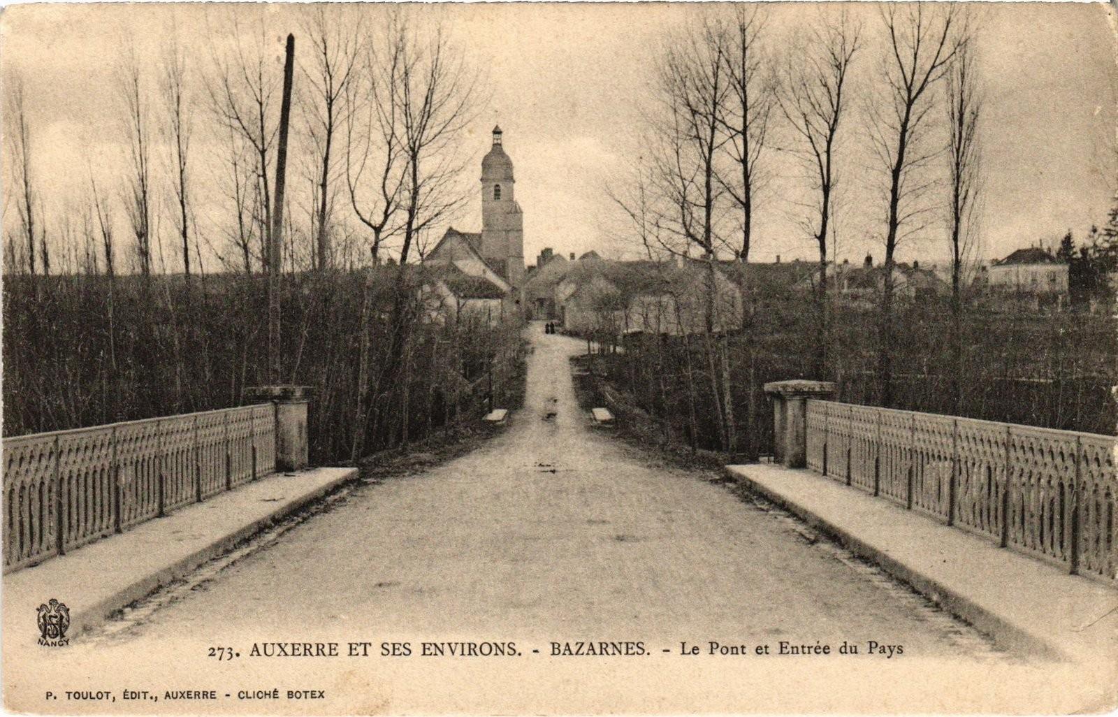 Version 2 : 273. AUXERRE ET SES ENVIRONS. - BAZARNES. - Le Pont et Entrée du Pays P. TOULOT, EDIT., AUXERRE - CLICHE BOTEX