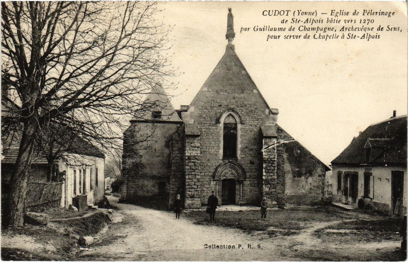 Version 3 : RepuBliqUF FRANCAISE) CUDOT (Yonne) Eglise de Pèlerinage de Ste-Alpais bâtie vers I270 par Guillaume de Champagne, Archevêque de pour servir de Chapelle à Ste-Alpais 594 p S2? & L U Sens , 2